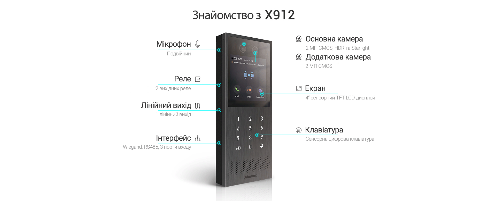 Akuvox X912, пропонуючи найсучасніші функції, орієнтована на перспективні житлові та комерційні проєкти. Завдяки компактним розмірам вона ідеально підходить для будівель з обмеженим простором для встановлення.