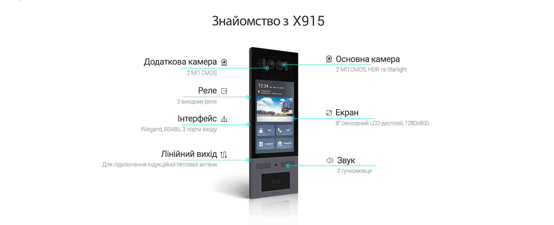 - X915S від Akuvox розроблена для забезпечення візуально приголомшливого та інтуїтивно зрозумілого інтерфейсу користувача. Вона має низку інноваційних функцій, що забезпечують повністю настроюване рішення для контролю доступу мешканців і відвідувачів у кондомініумах, багатоквартирних будинках, офісних будівлях, котеджних містечках і на промислових об’єктах