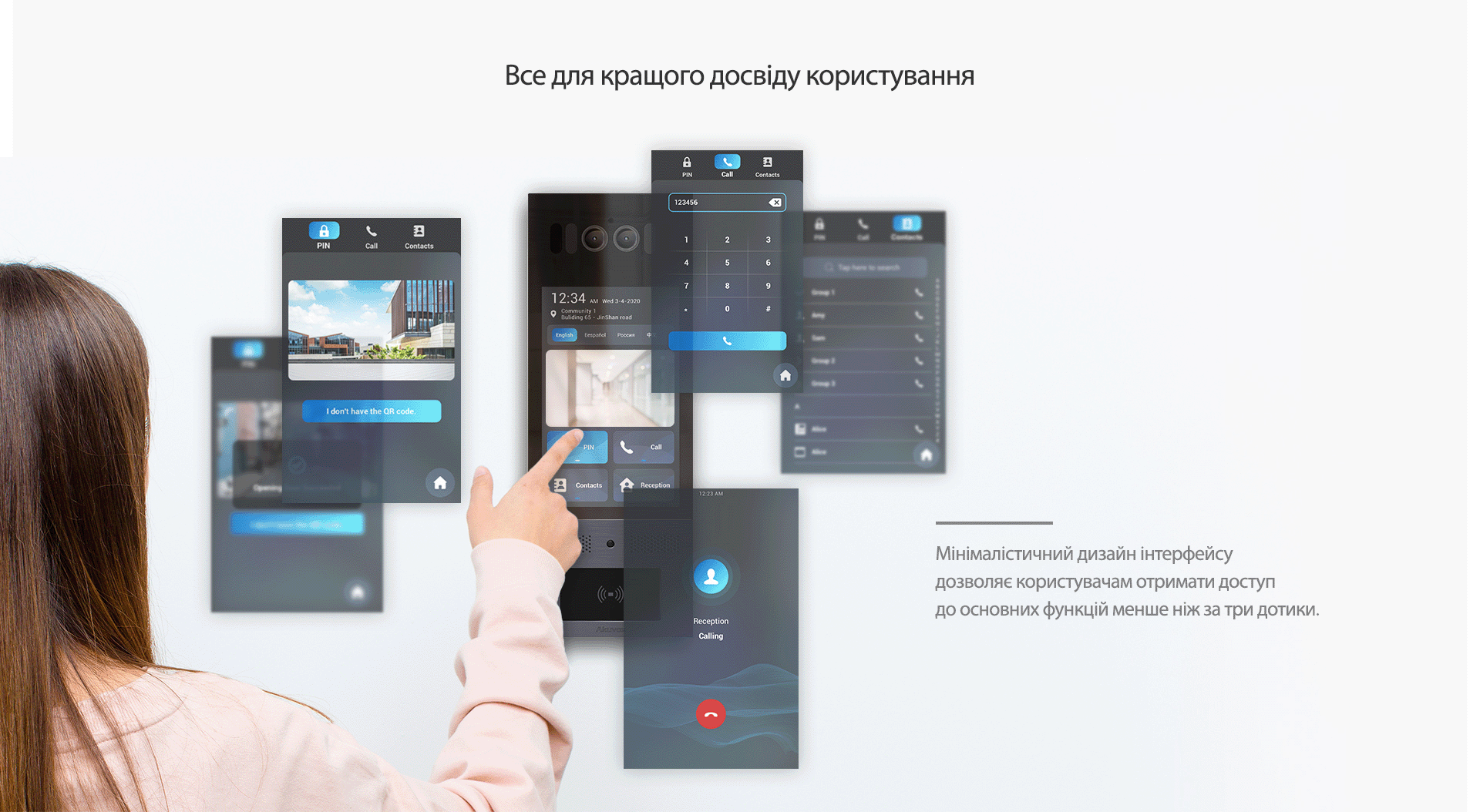 - Інтуїтивно зрозумілий інтерфейс з кольоровим сенсорним дисплеєм для зручності мешканців та відвідувачів