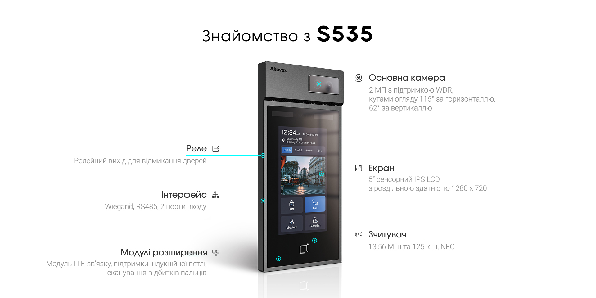 • Зчитувач RF-карток: 13,56 МГц, 125 кГц, NFC