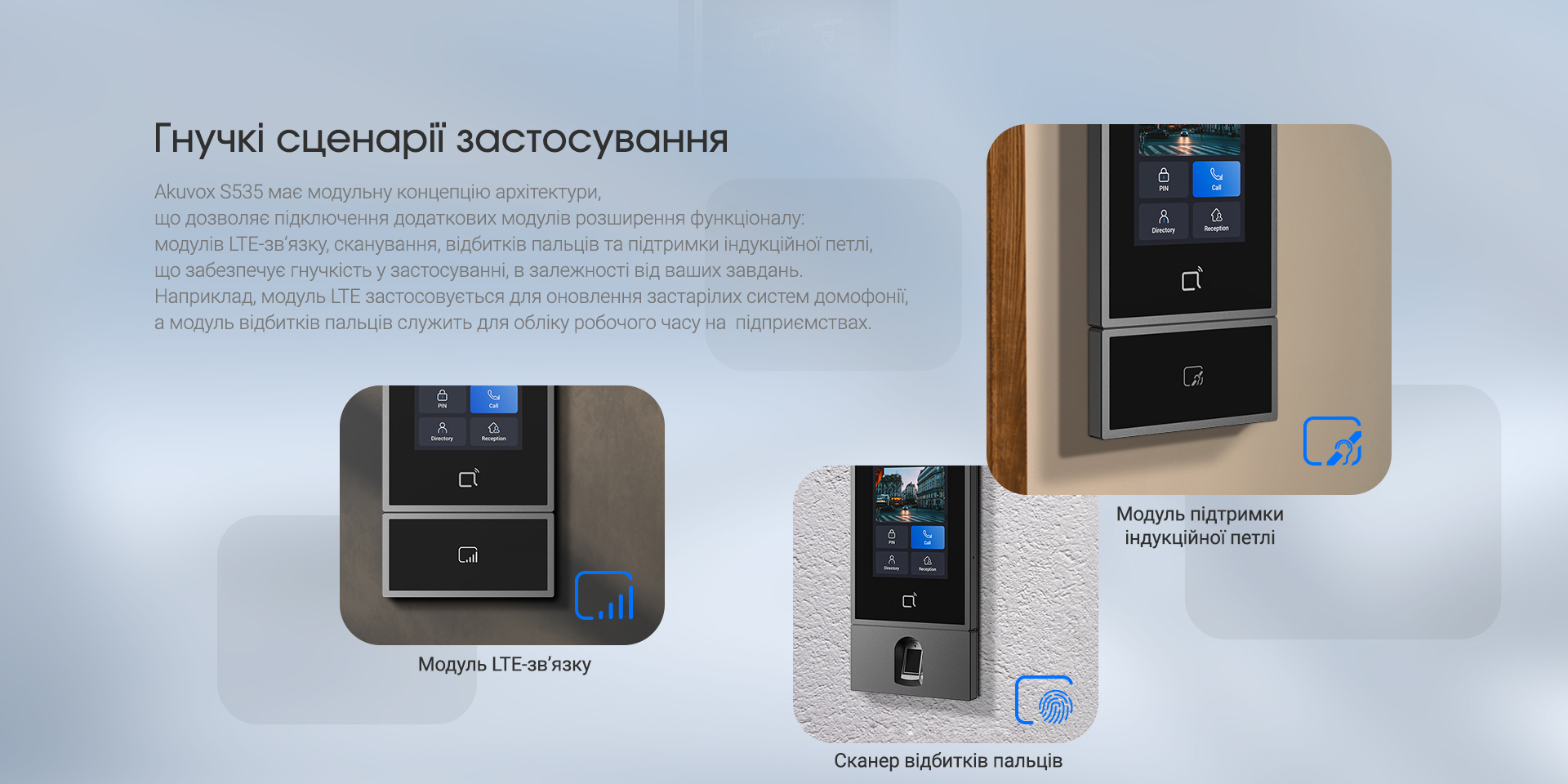 • Підтримка модулів розширення: LTE-зв’язку, сканування відбитків пальців, підтримки індукційної петлі