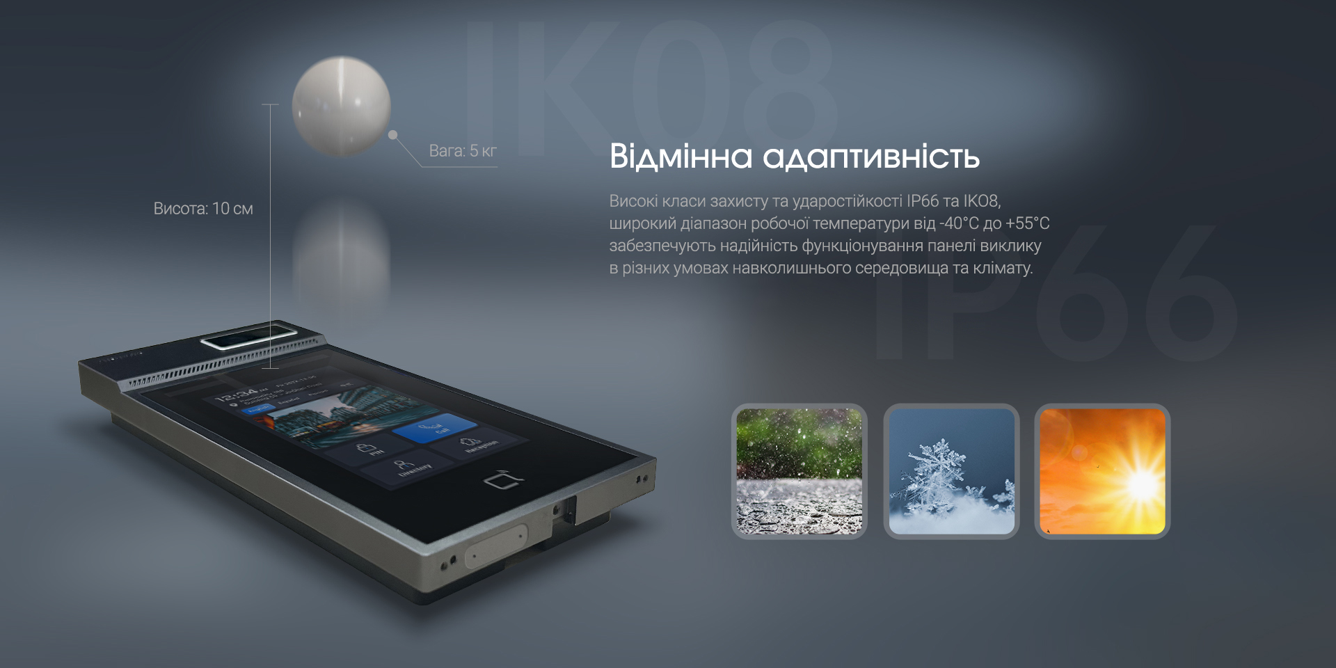 • Вандалозахищений корпус з алюмінію з 5″ сенсорним екраном