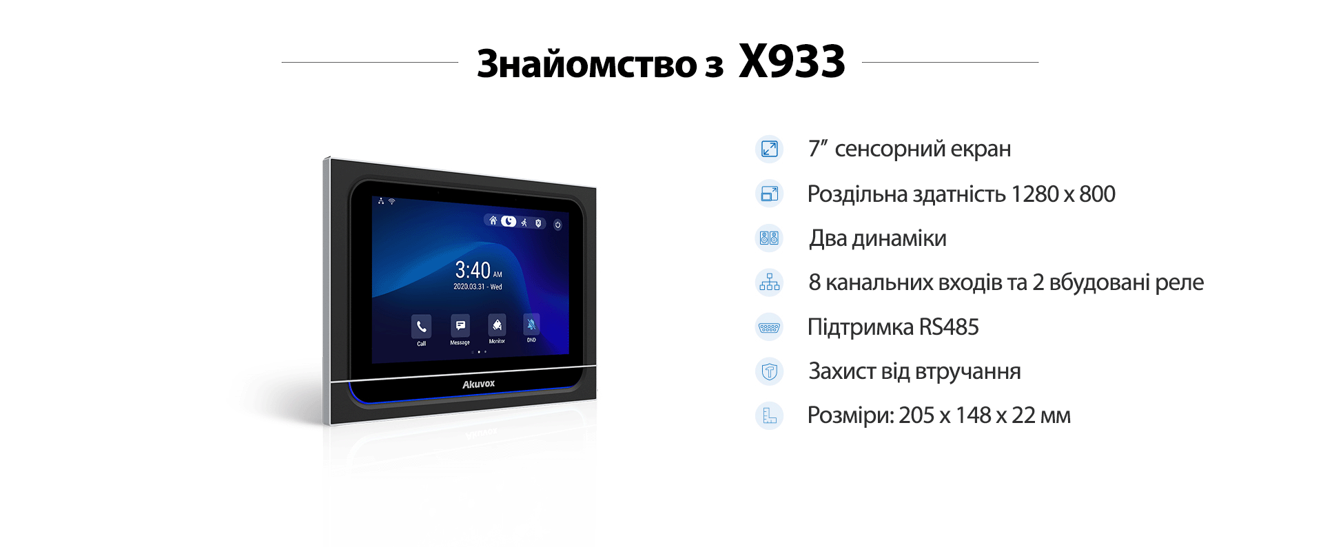 Перший продукт серії X від Akuvox, монітор для приміщень Akuvox X933 досягає ідеального балансу між стилем та технологіями.