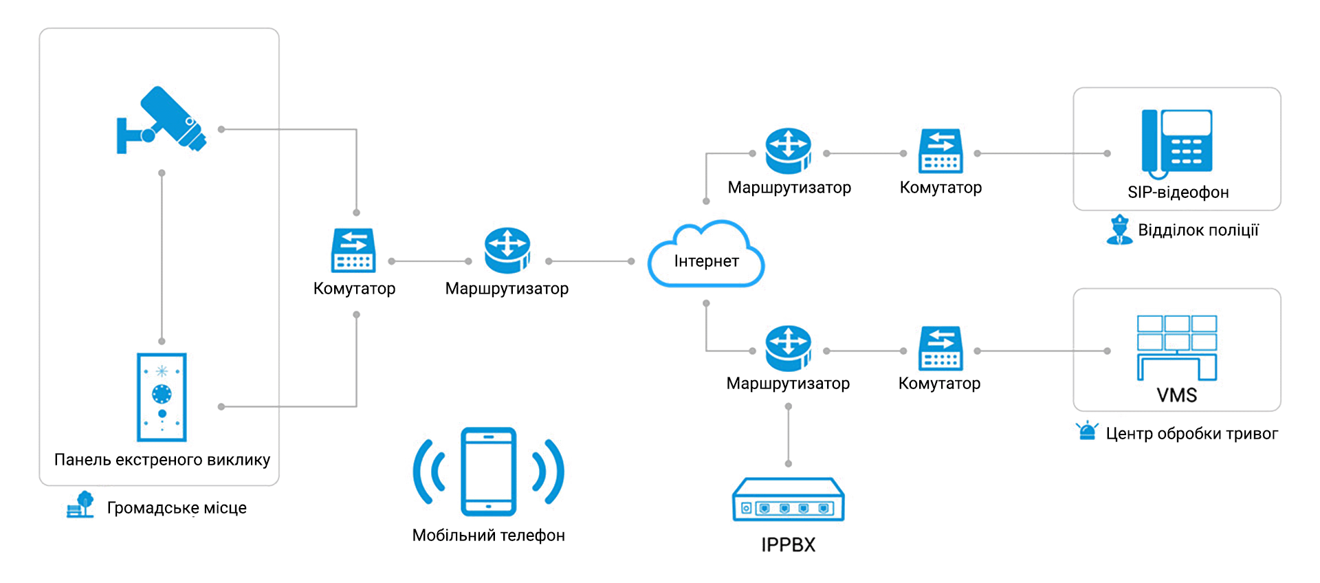 Домофони, IP-телефони та мобільні телефони з’єднані між собою за допомогою SIP-протоколу, утворюючи високонадійну систему комунікації, яка забезпечує преміальну якість зв’язку в будь-якій ситуації.